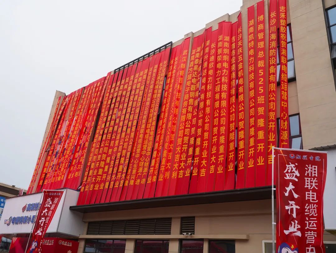 聚勢煥新,乘風啟航。9月24日,湘聯電纜運營中心在長沙灣田五金機電市場盛大開業。現場鮮花錦簇、彩帶飛揚、禮炮齊鳴,場面熱烈且莊重。來自業界的近200位嘉賓歡聚一堂,共同見證了這一盛事。