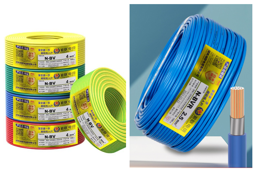 湘聯(lián)電纜N-BV線(銅芯聚氯乙烯絕緣耐火電線)和N-BVR線(銅芯聚氯乙烯絕緣耐火軟線),在聚氯乙烯絕緣層和銅線之間增加了一層云母帶,云母帶是一種耐火絕緣材料,具有優(yōu)良的耐高溫性能和耐燃燒性能。即使塑料外皮被燒壞,還有耐火層,也不會(huì)引起短路。在遇明火燃燒時(shí)基本不存在有害煙霧的揮發(fā)。